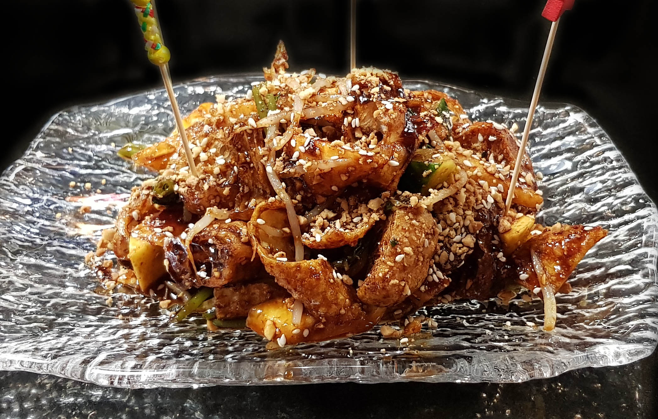 A Malaysian hawker stall classic! The name literally translates to "Smooth Egg Noodles". Flat rice noodles are quickily stir-fried in lard, before a velvety egg gravy together with vegtables and seafood is poured over the noodles. Served with sweet pickled green chillies. Savoury and comforting!